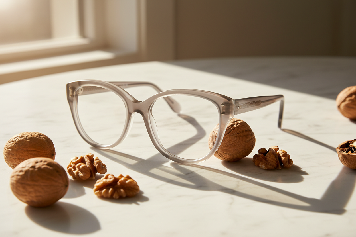 Lyra ist in vielen wunderschönen Farben erhältlich – auch in den Colours of Nature Tönen. Diese Modelle bestechen durch echte, laminierte Naturmaterialien – sorgfältig ausgewählte Blüten und Pflanzenteile – die jede Brille zu einem individuellen, naturverbundenen Kunstwerk machen.