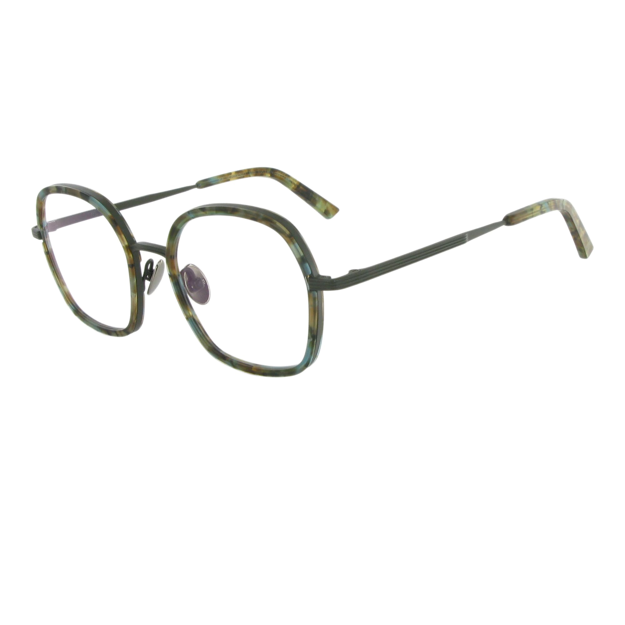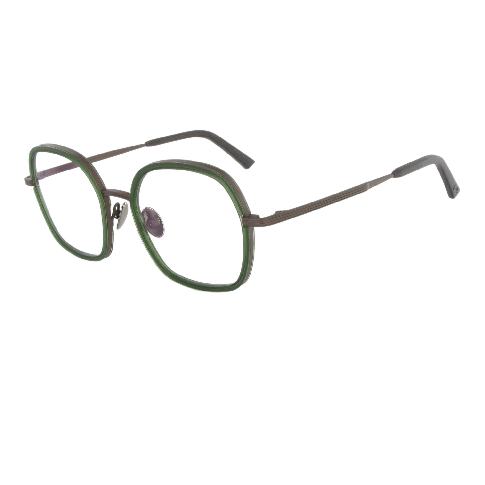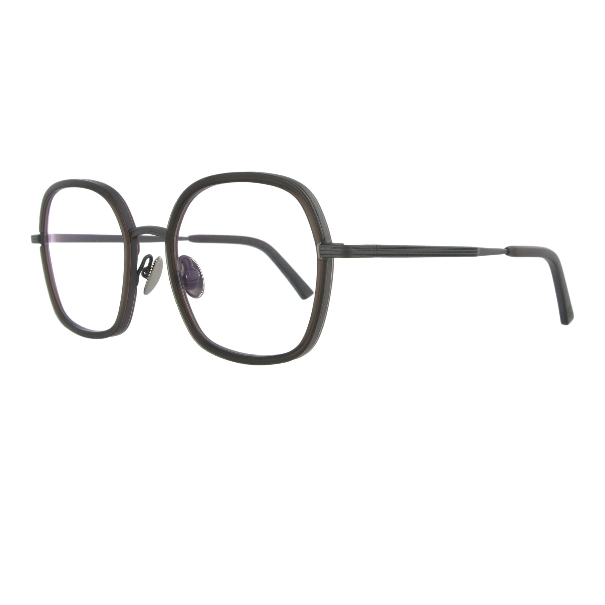 So souverän wie ihre Namens-Patin präsentiert sich das Modell Hatschepsut. Die Form ist eine weiche, harmonische Interpretation eines Quadrats mit abgerundeten Ecken. Der massive 2,5 mm Titanrahmen hält einen kunstvoll gefrästen, 4 mm starken Acetat-Innenring. Dieser wurde von Hand angepasst und verleiht der Fassung eine unglaubliche plastische Tiefe.