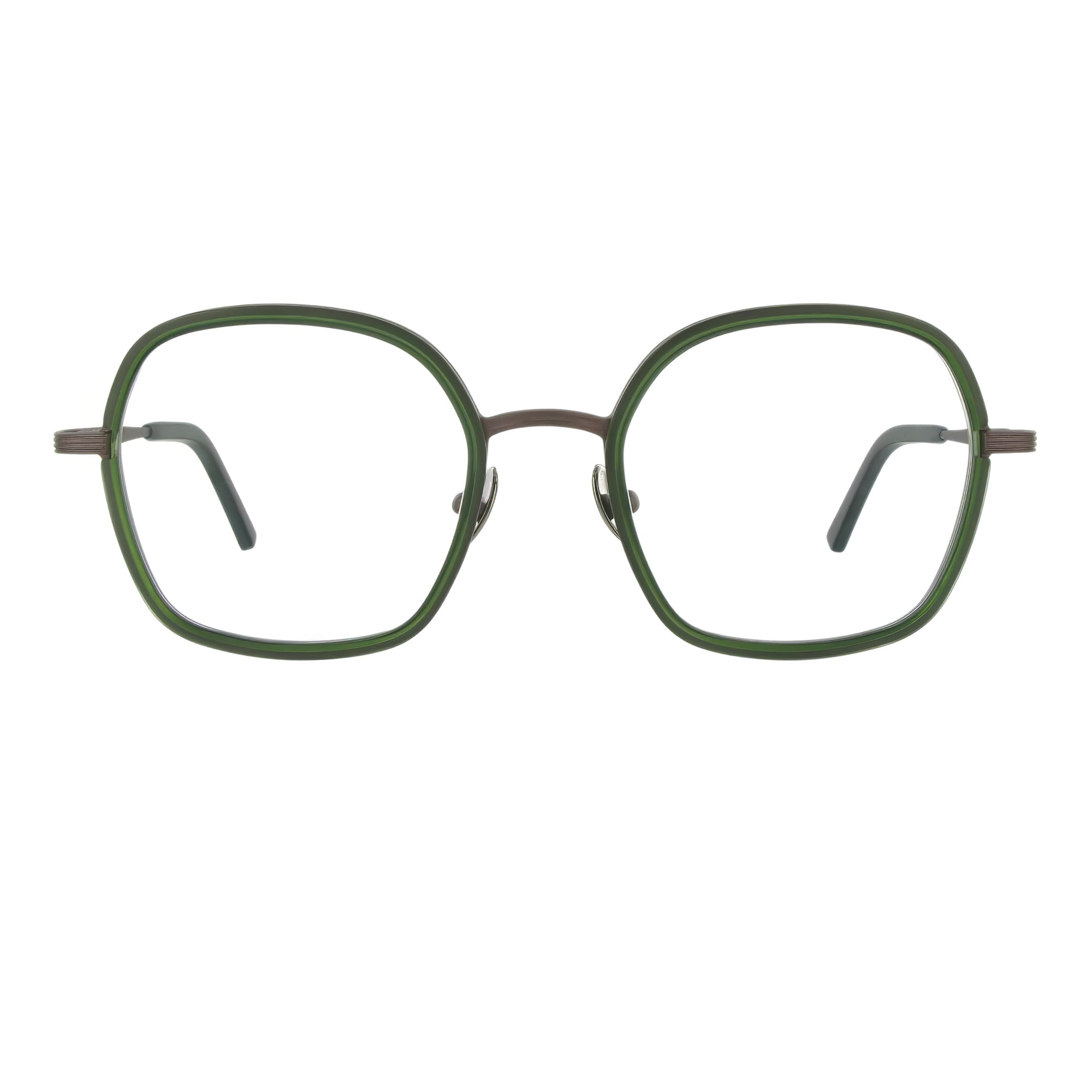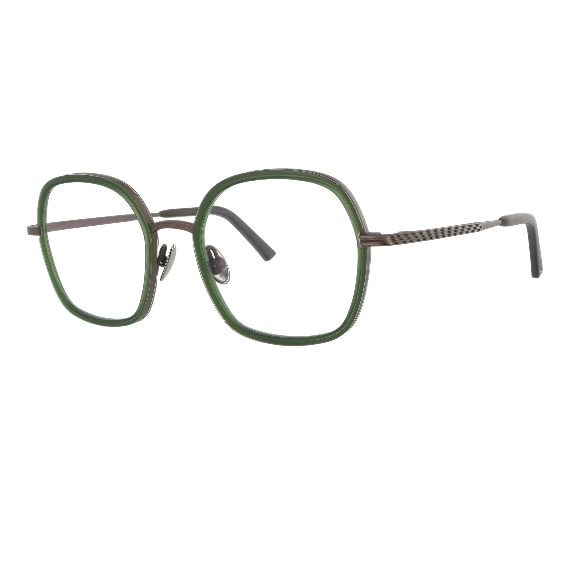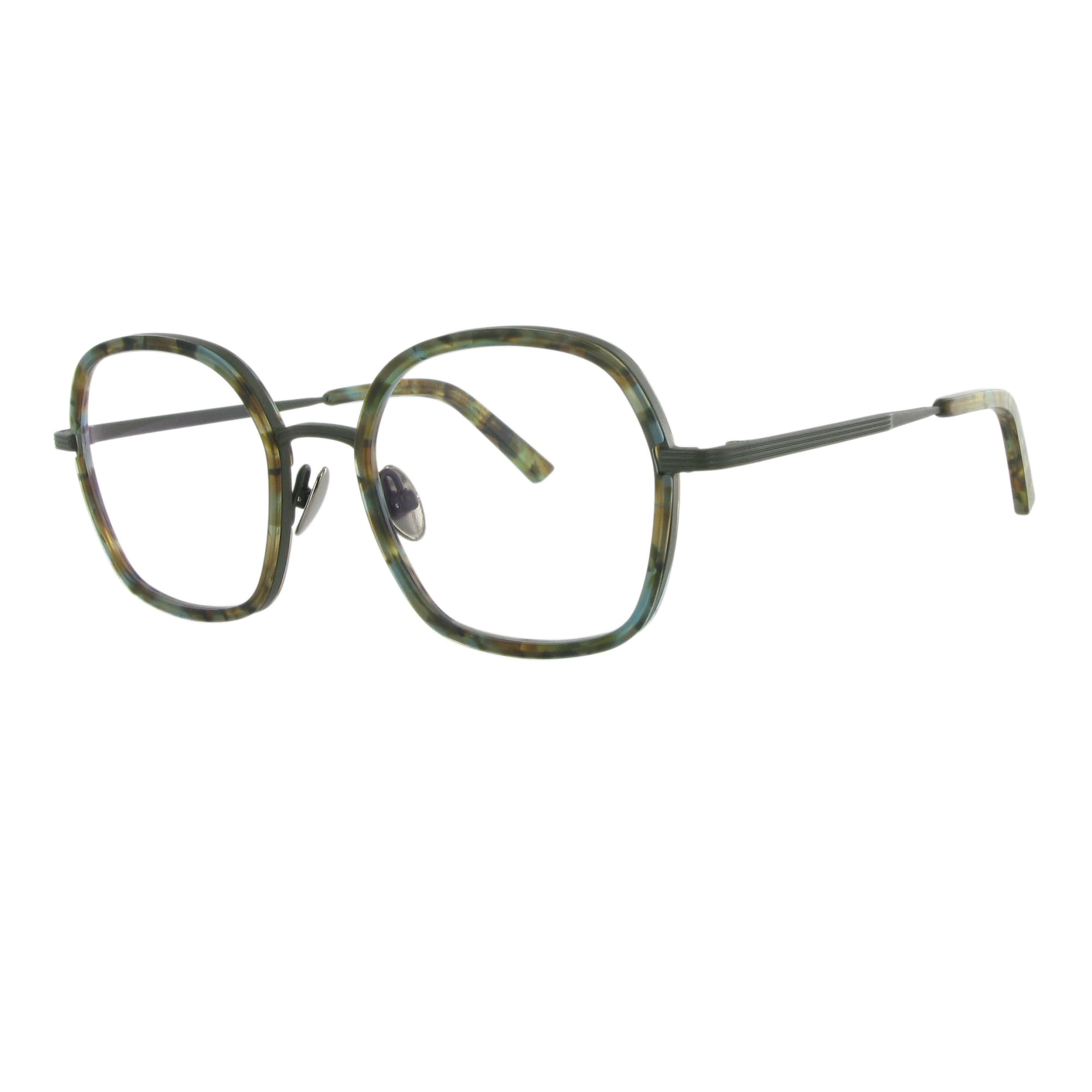 So souverän wie ihre Namens-Patin präsentiert sich das Modell Hatschepsut. Die Form ist eine weiche, harmonische Interpretation eines Quadrats mit abgerundeten Ecken. Der massive 2,5 mm Titanrahmen hält einen kunstvoll gefrästen, 4 mm starken Acetat-Innenring. Dieser wurde von Hand angepasst und verleiht der Fassung eine unglaubliche plastische Tiefe.