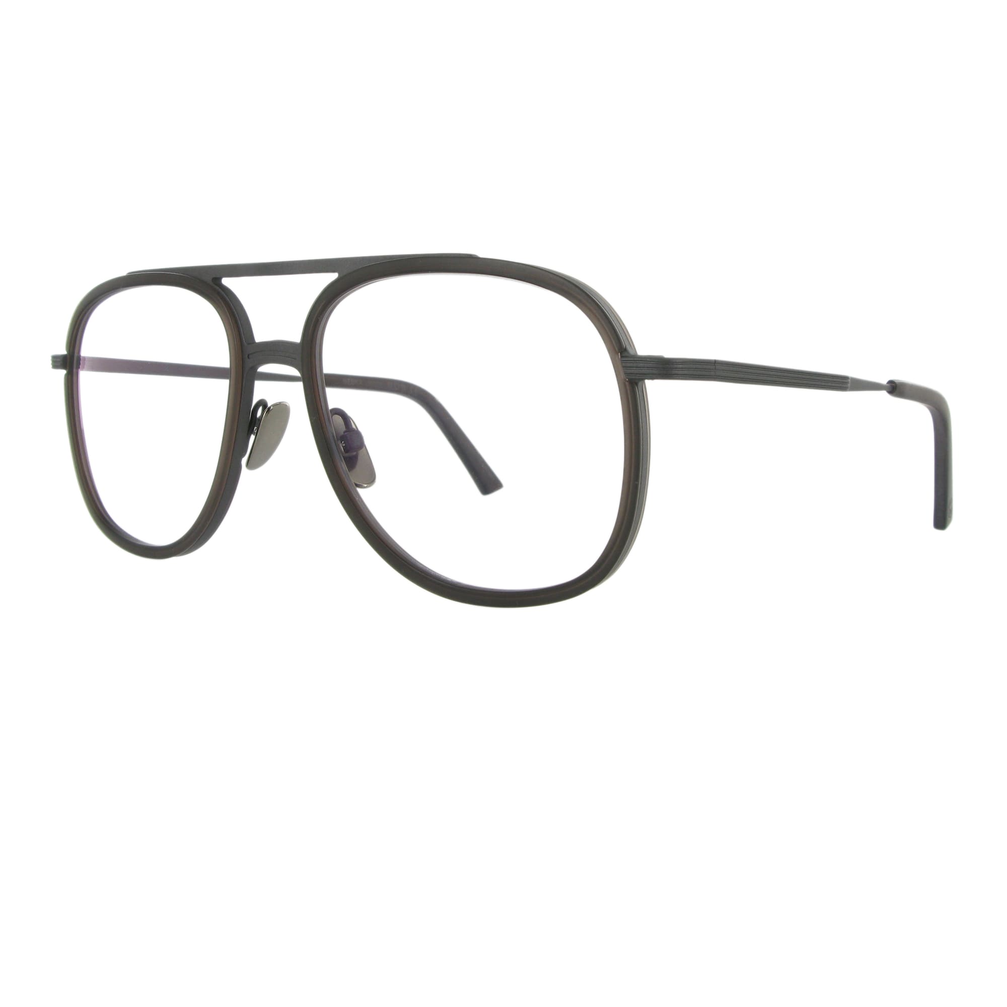 Aus feinstem Block-Titan aus einem Stück gelasert, mit einem Acetat-Ring in verschiedenen Farben, die Bügelenden bestehen ebenfalls aus Acetat.
