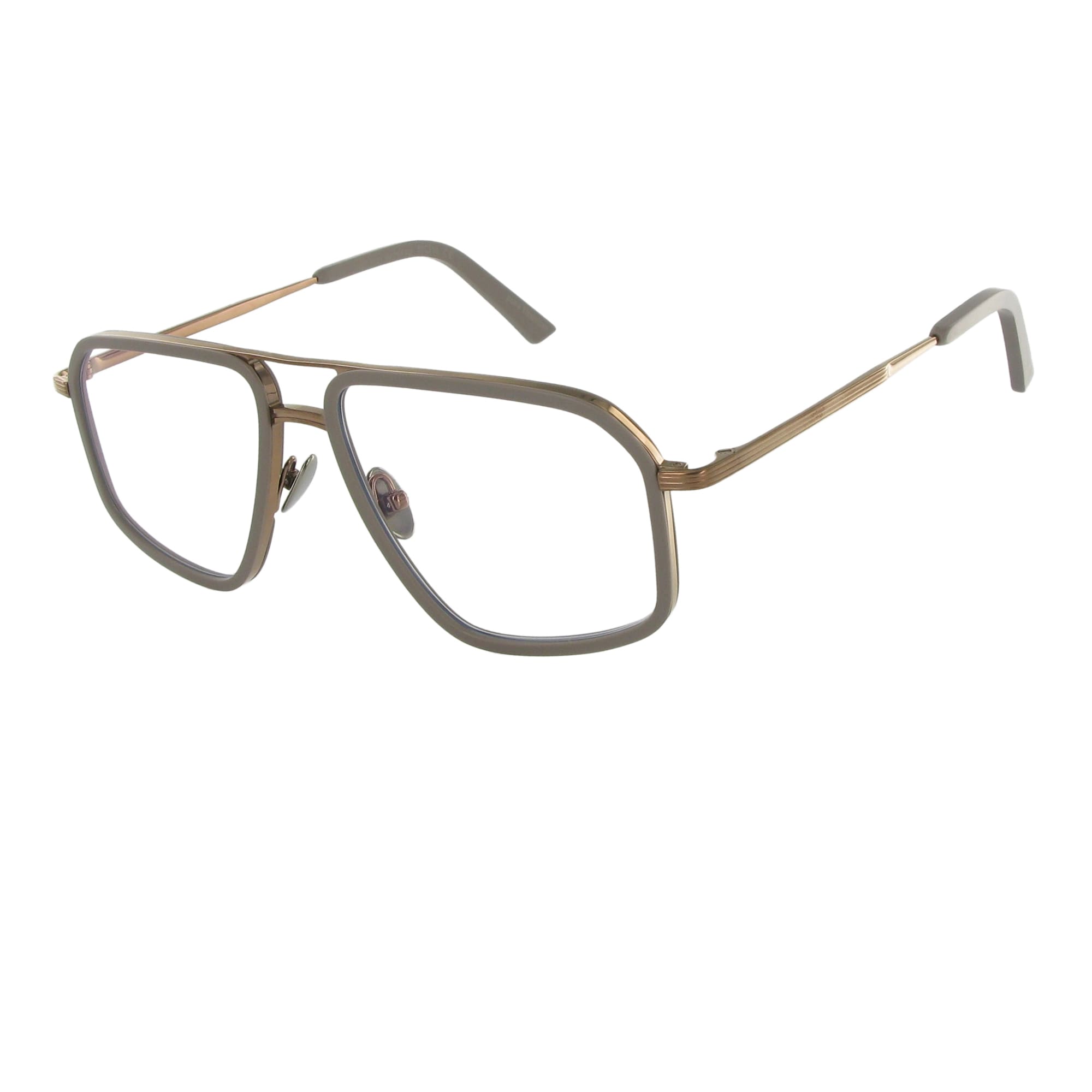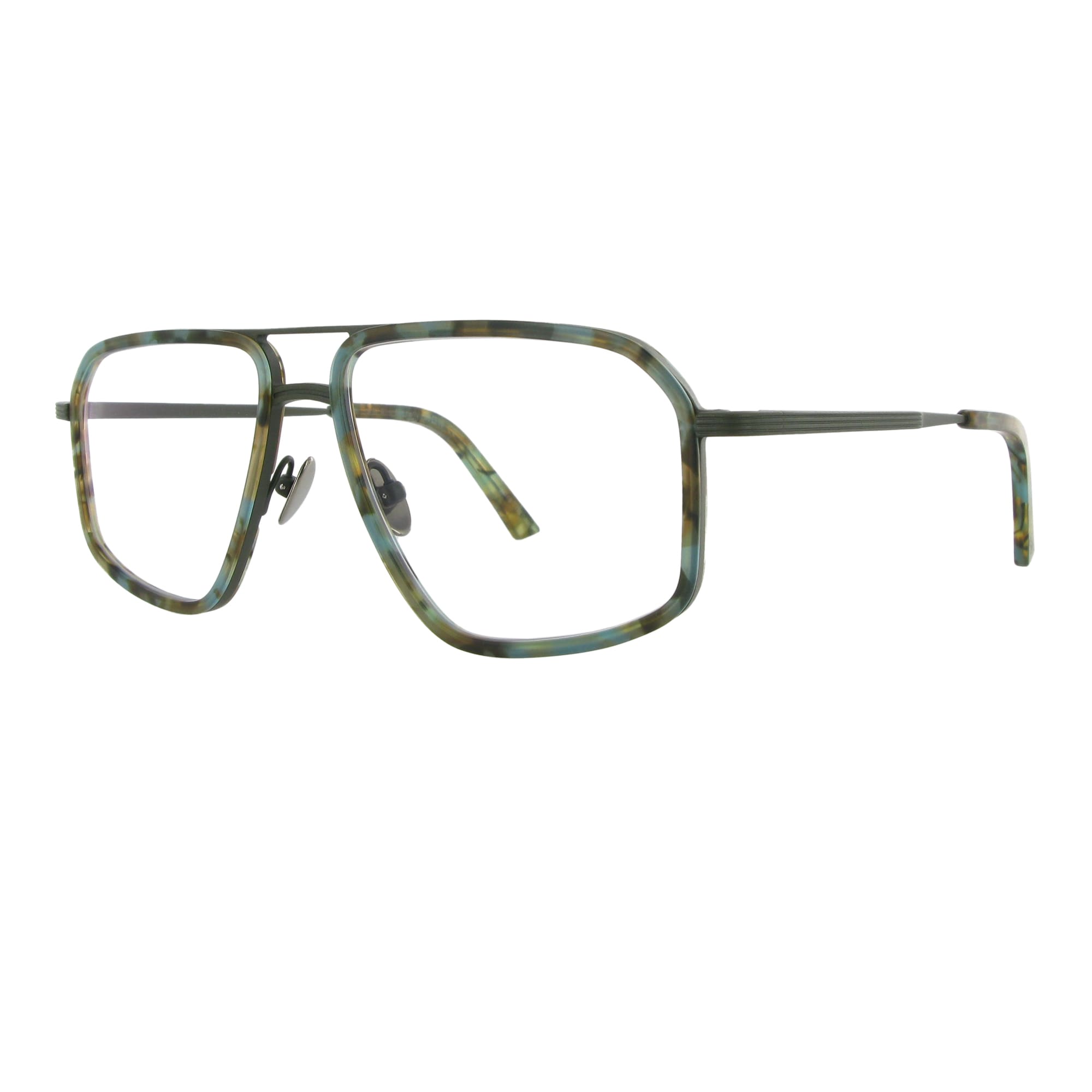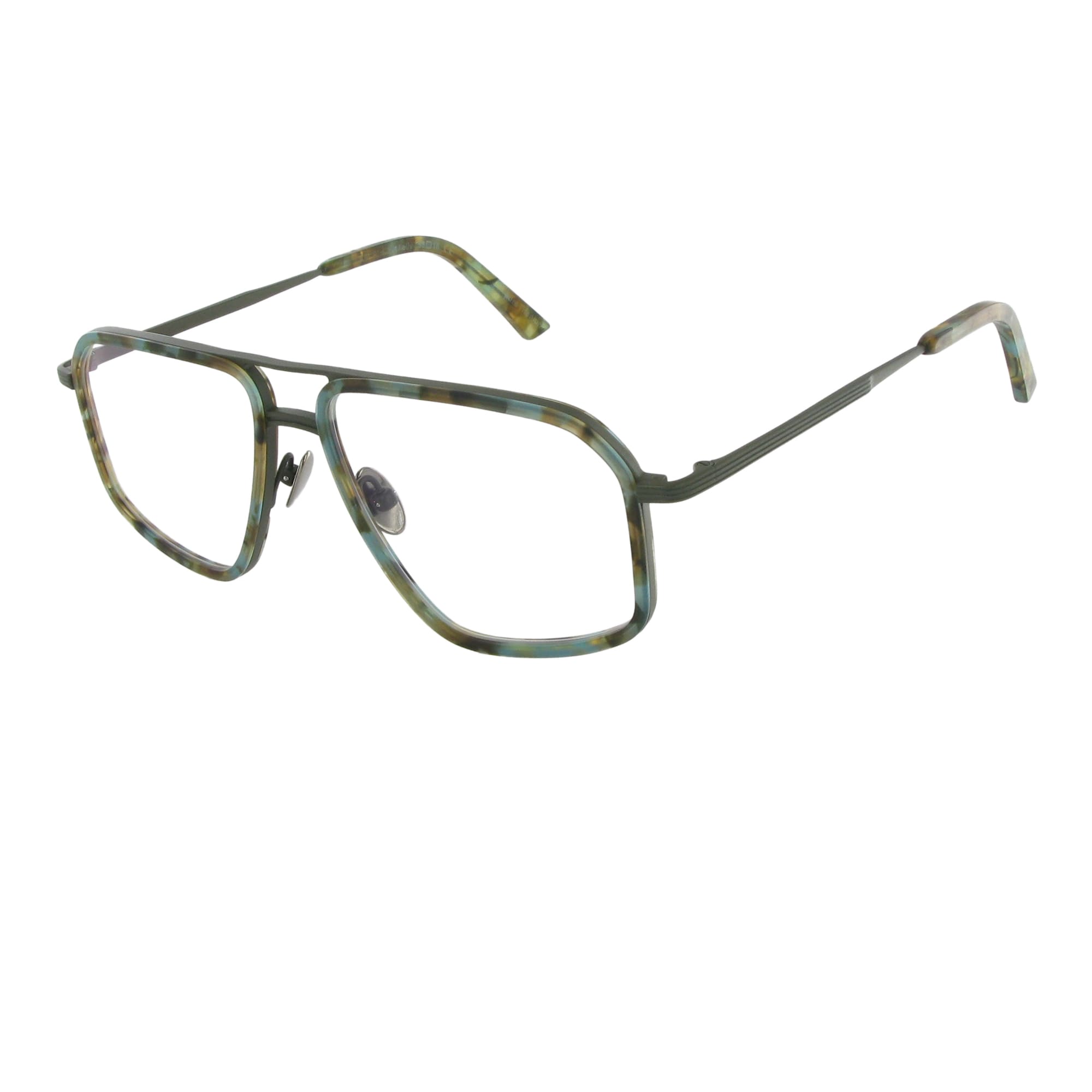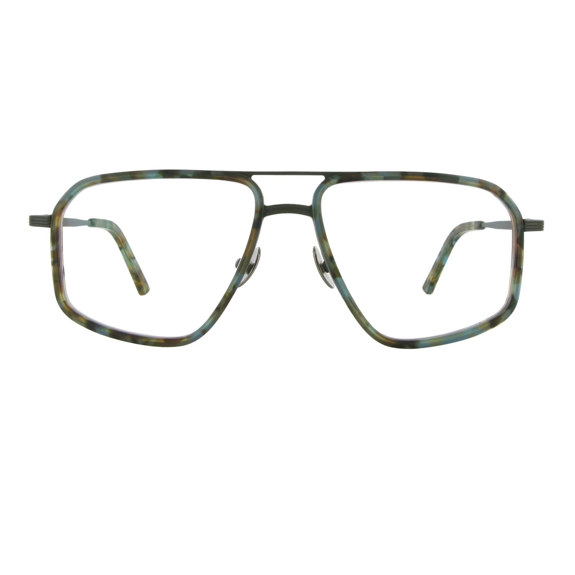 Aus feinstem Block-Titan aus einem Stück gelasert, mit einem Acetat-Ring in verschiedenen Farben, die Bügelenden bestehen auch aus Acetat.