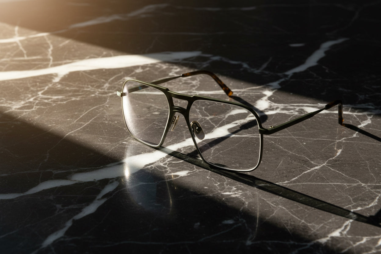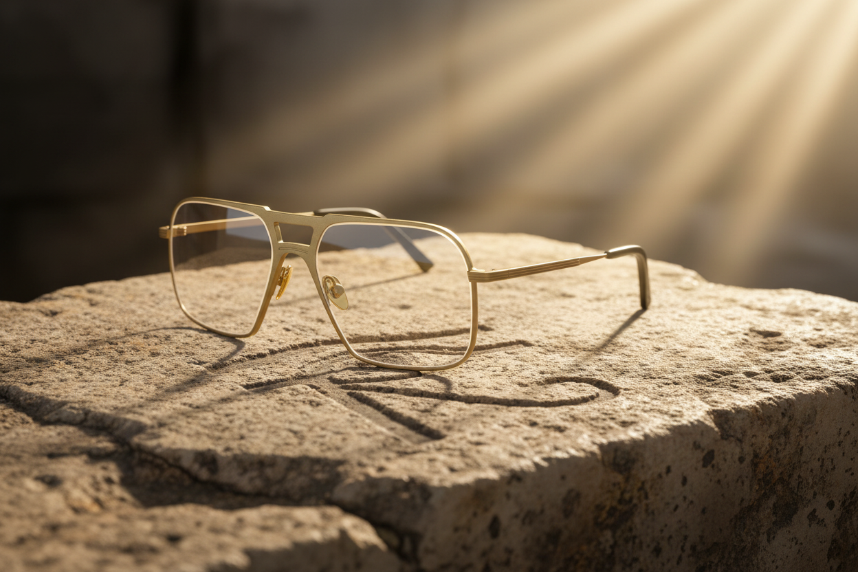 Für diesen Geist haben wir eine Fassung entworfen, die Konventionen bricht. Das Modell Echnaton ist ein markanter Navigator-Style mit Doppelsteg.