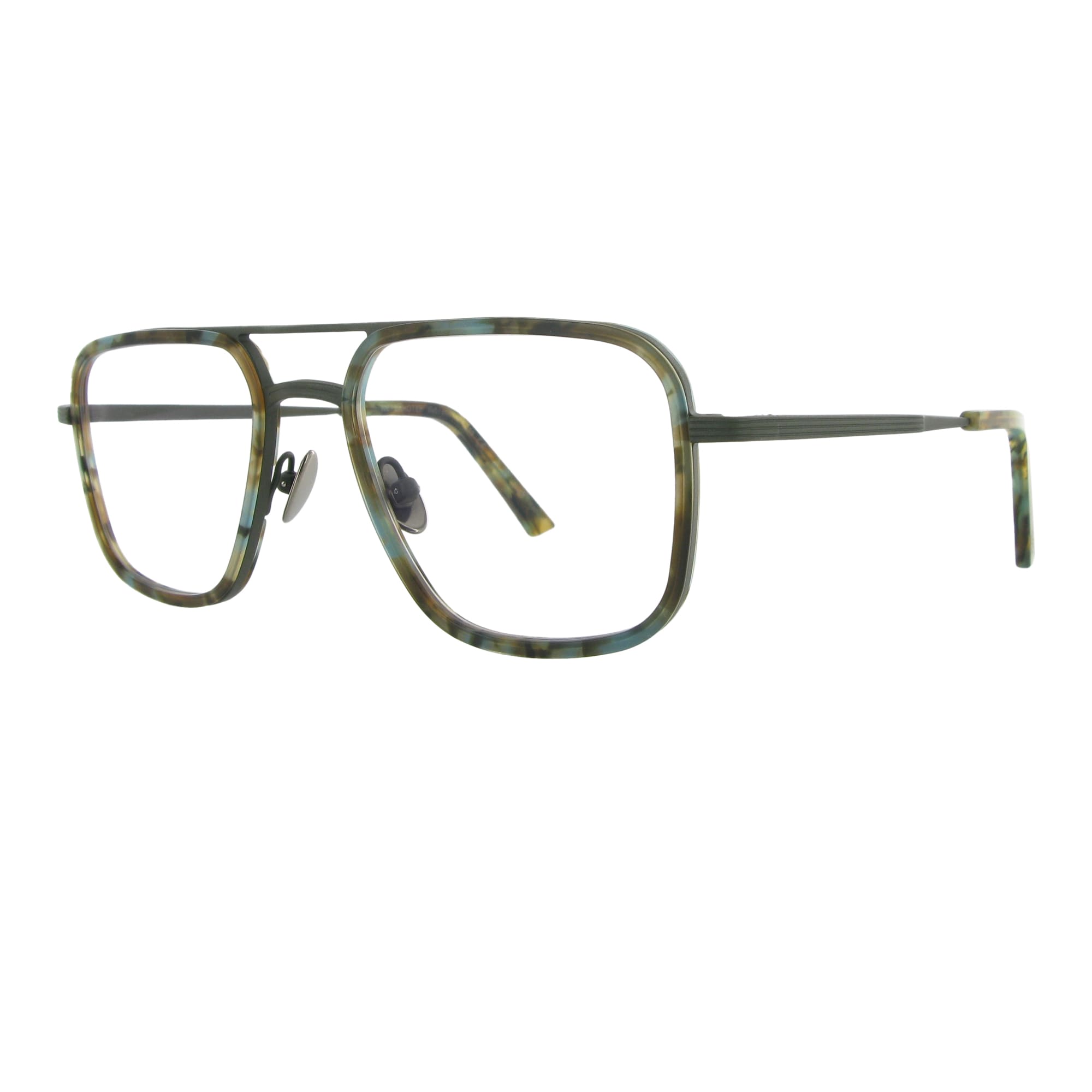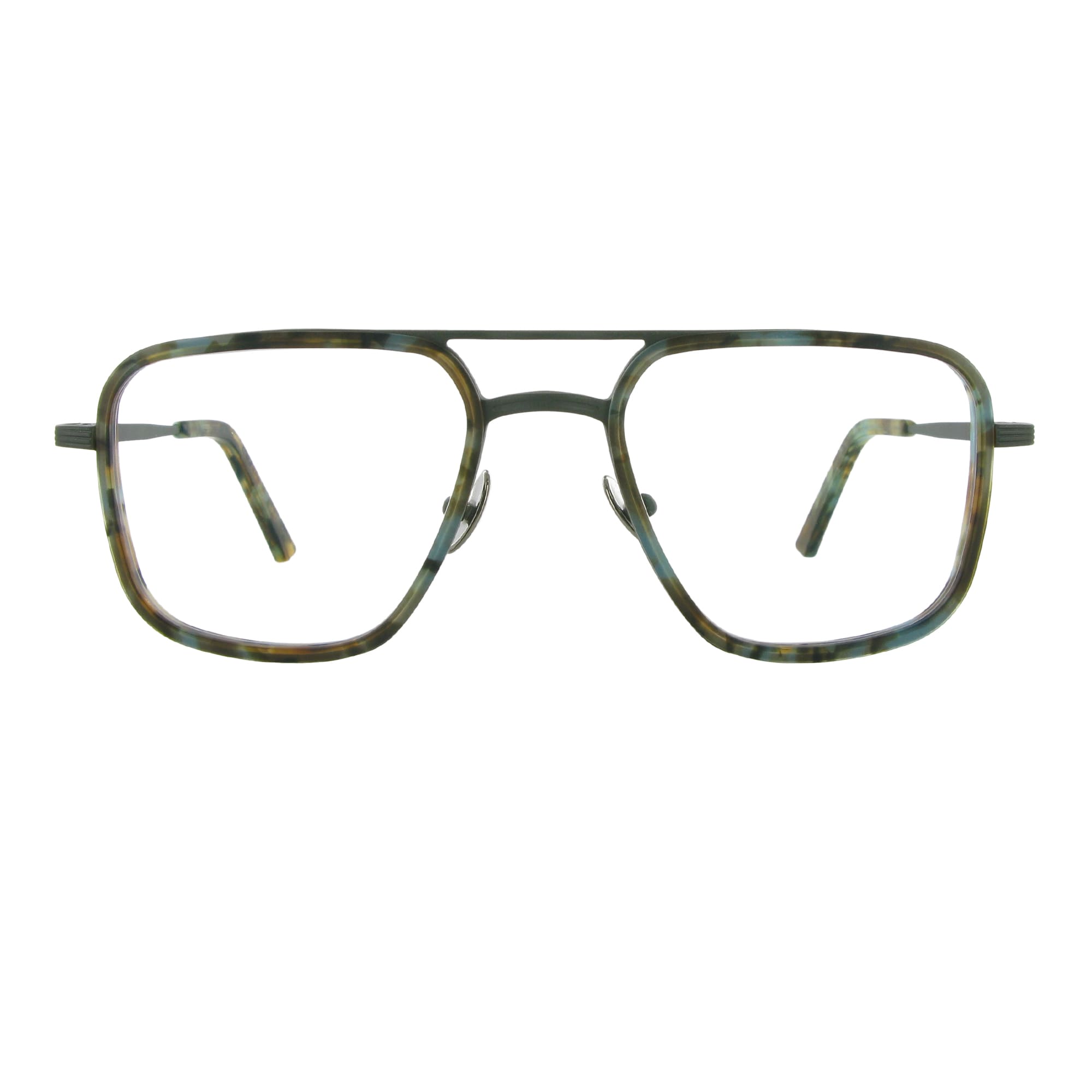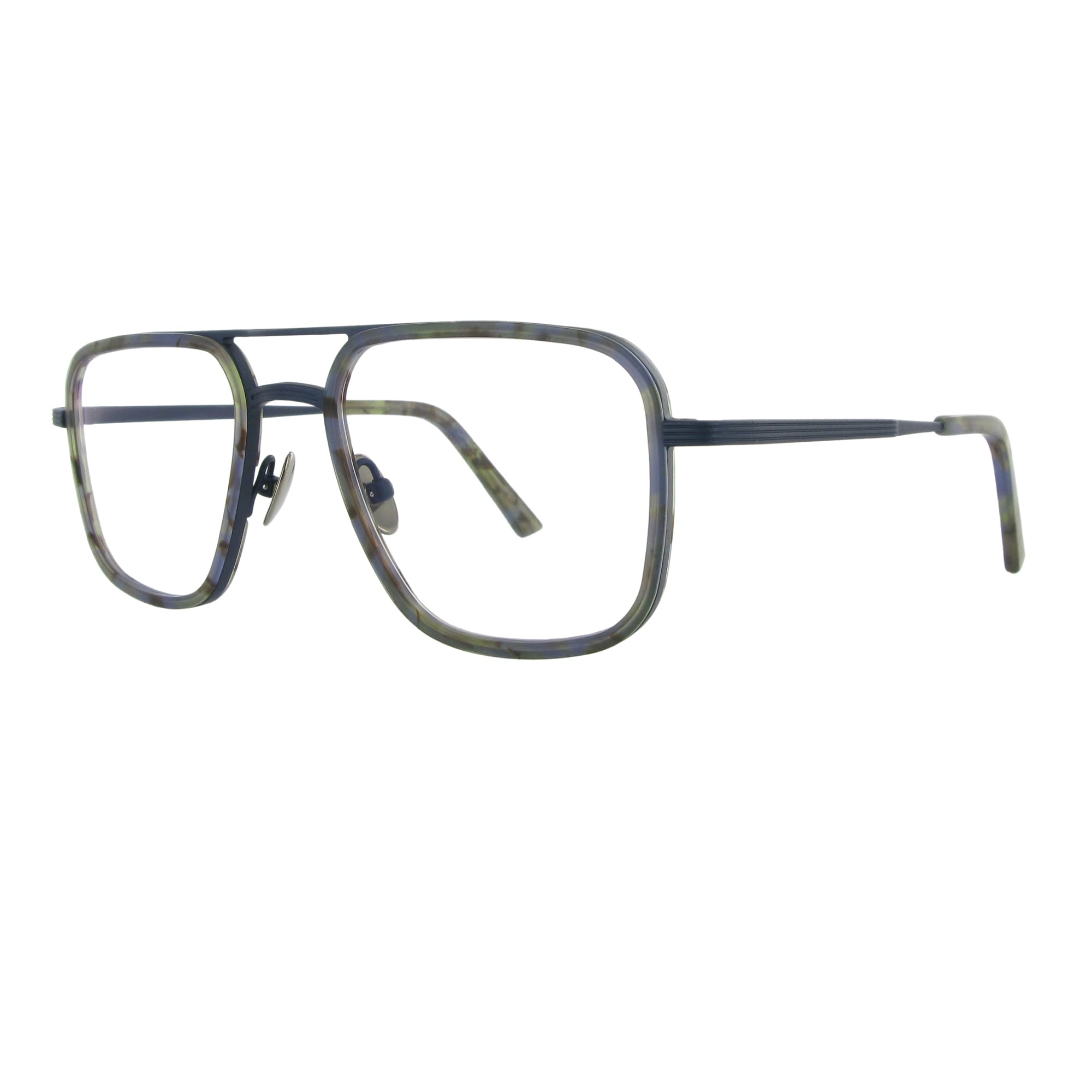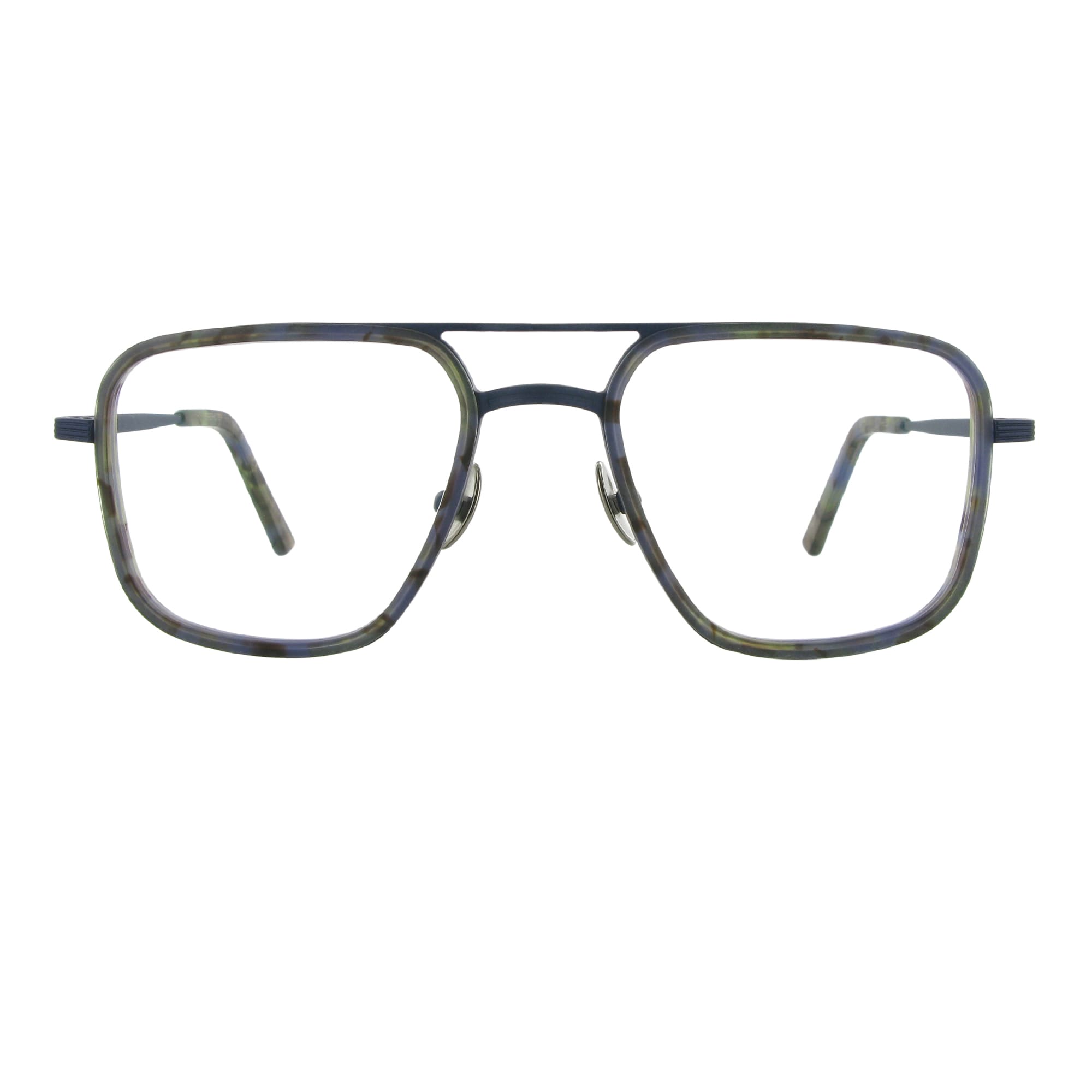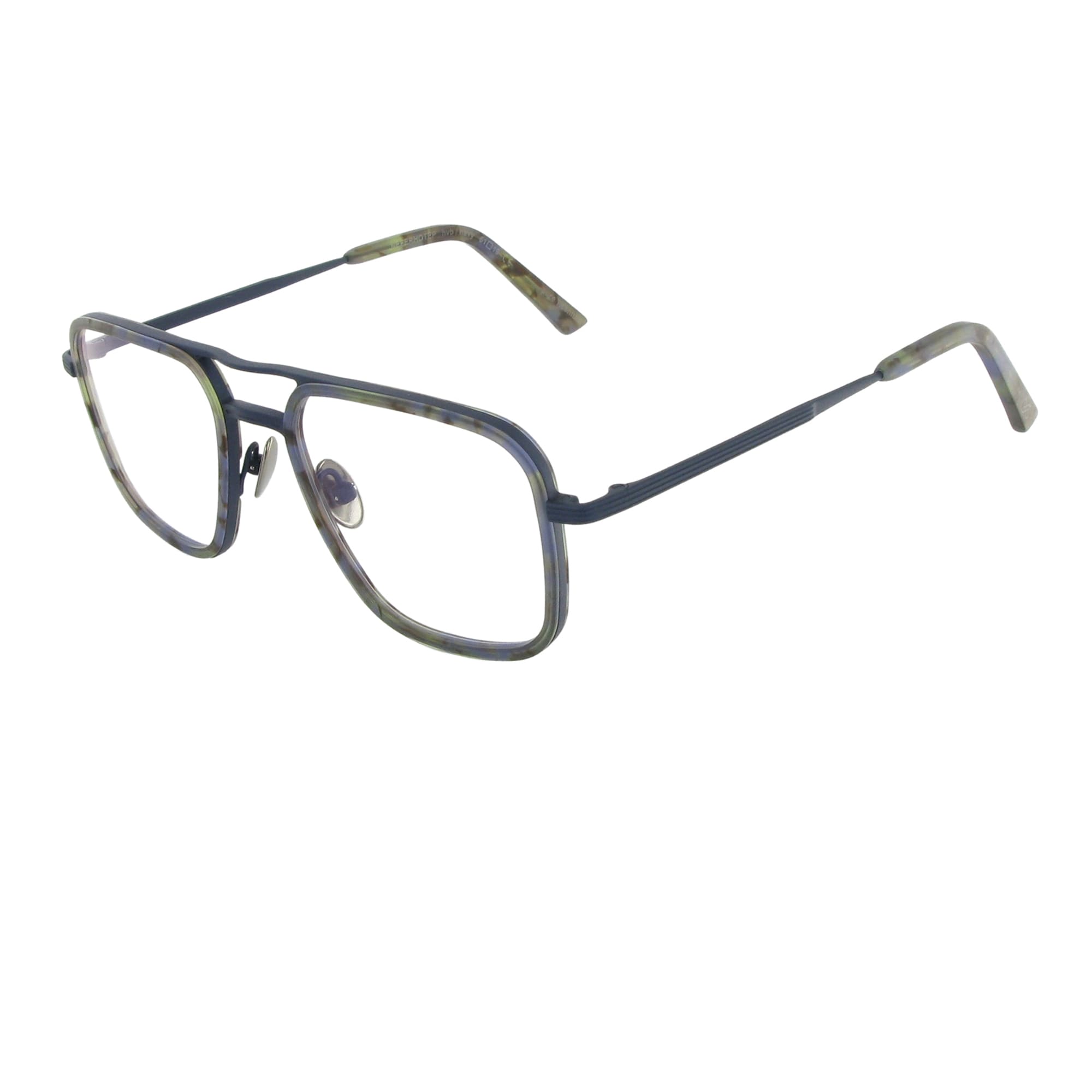 Aus feinstem Block-Titan aus einem Stück gelasert, mit einem Acetat-Ring in verschiedenen Farben, die Bügelenden bestehen ebenfalls aus Acetat.