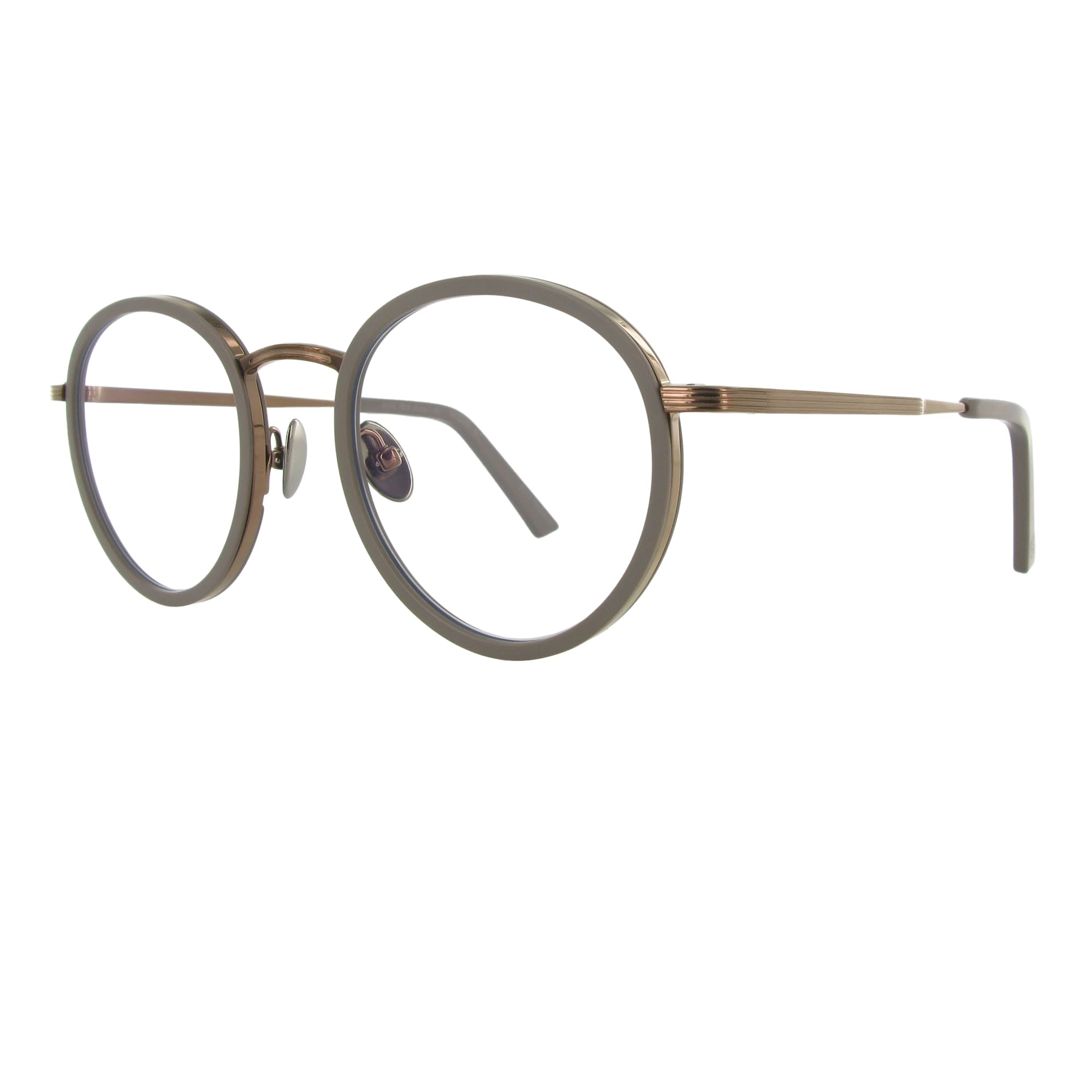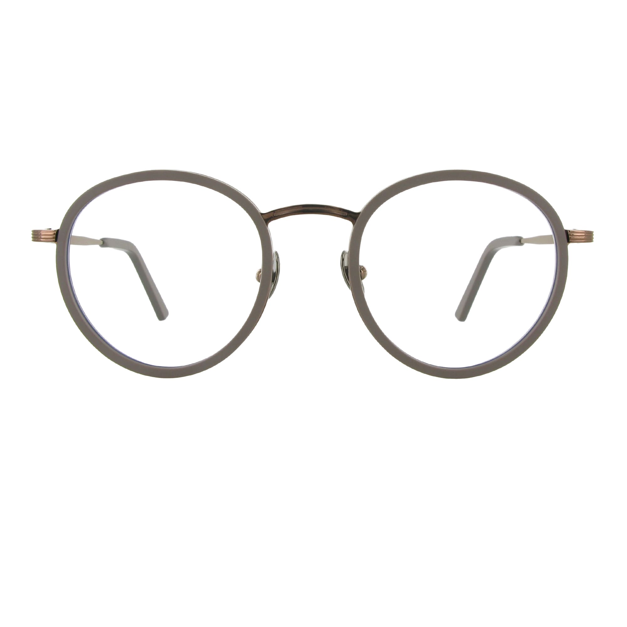 Unsere Nun ist aus feinstem Block-Titan aus einem Stück gelasert, mit einem Acetat-Ring in verschiedenen Farben, die Form liegt zwischen rund und pantoskopisch. Bügelenden auch aus Acetat. Ein äußerst tragbares Modell und absolut unisex.