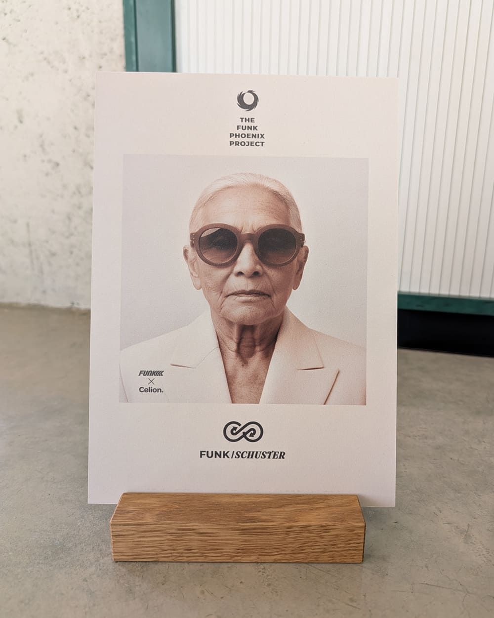 Doppelseitiger POS-Aufsteller - die revolutionäre Geschichte des FUNK PHOENIX PROJECTs sprich FUNK x Celion® greifbar auf der Verkaufstheke.