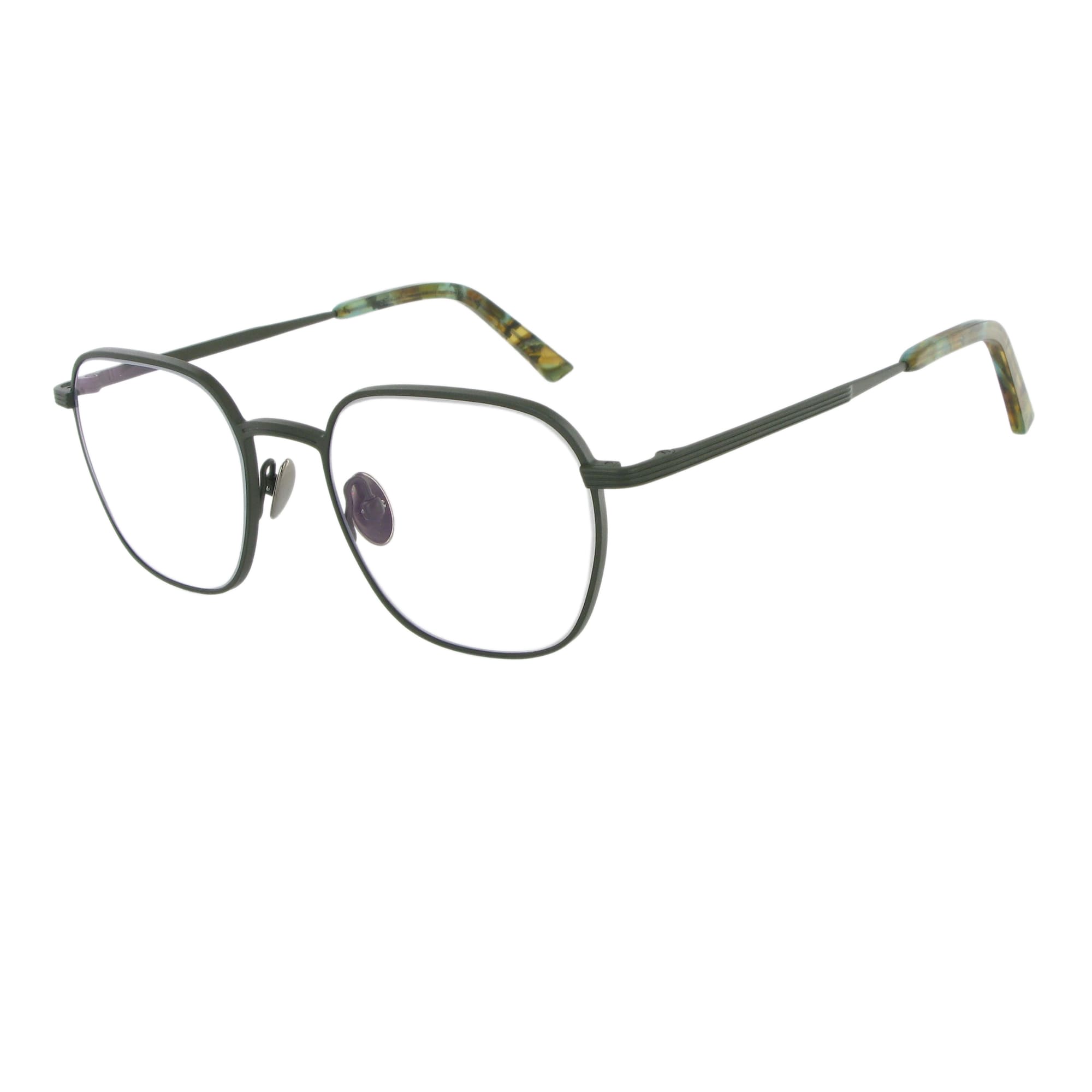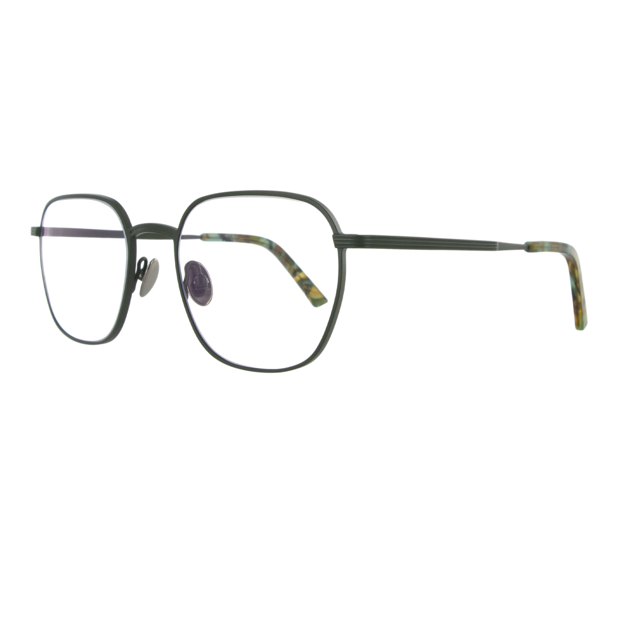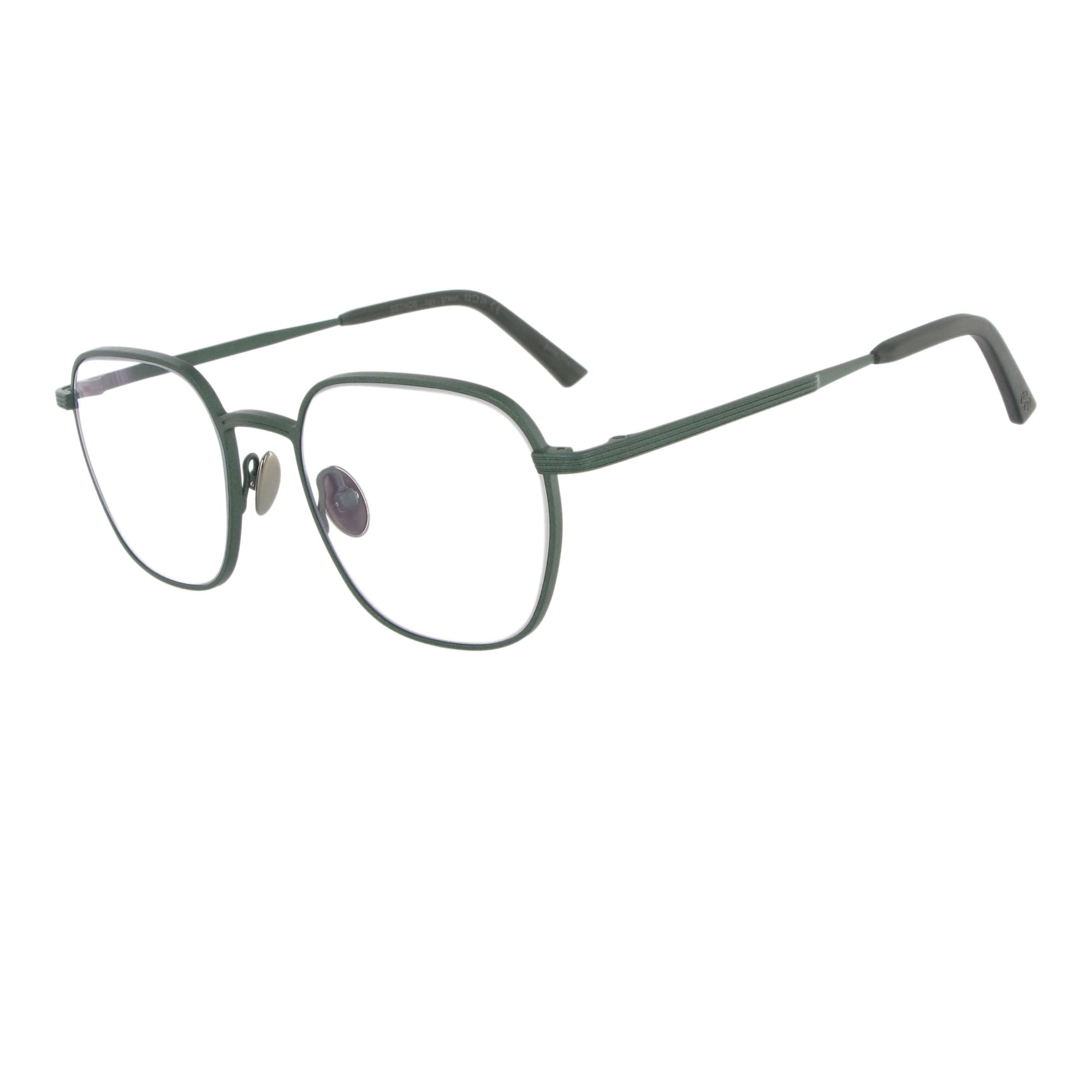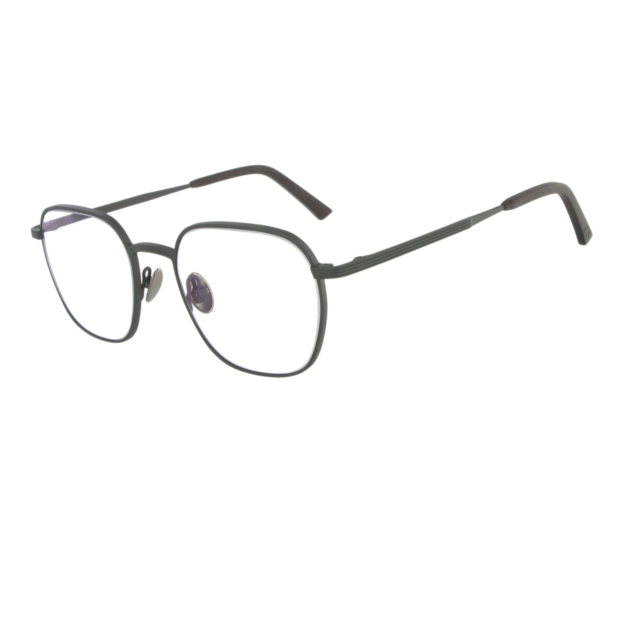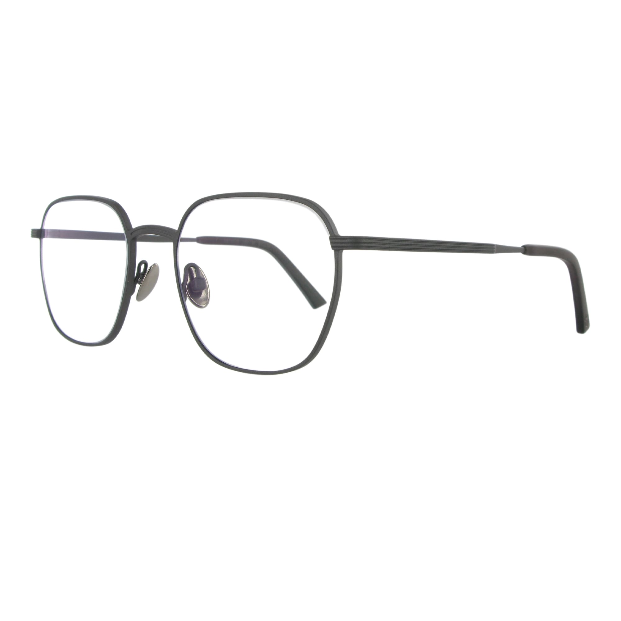 Das Design: Das Modell Sethos übersetzt diese konstruktive Klarheit in eine Brille. Die Form ist eine moderne, intellektuelle Panto-Variante. Durch die massive Bauweise wirkt sie jedoch viel präsenter als klassische Modelle.